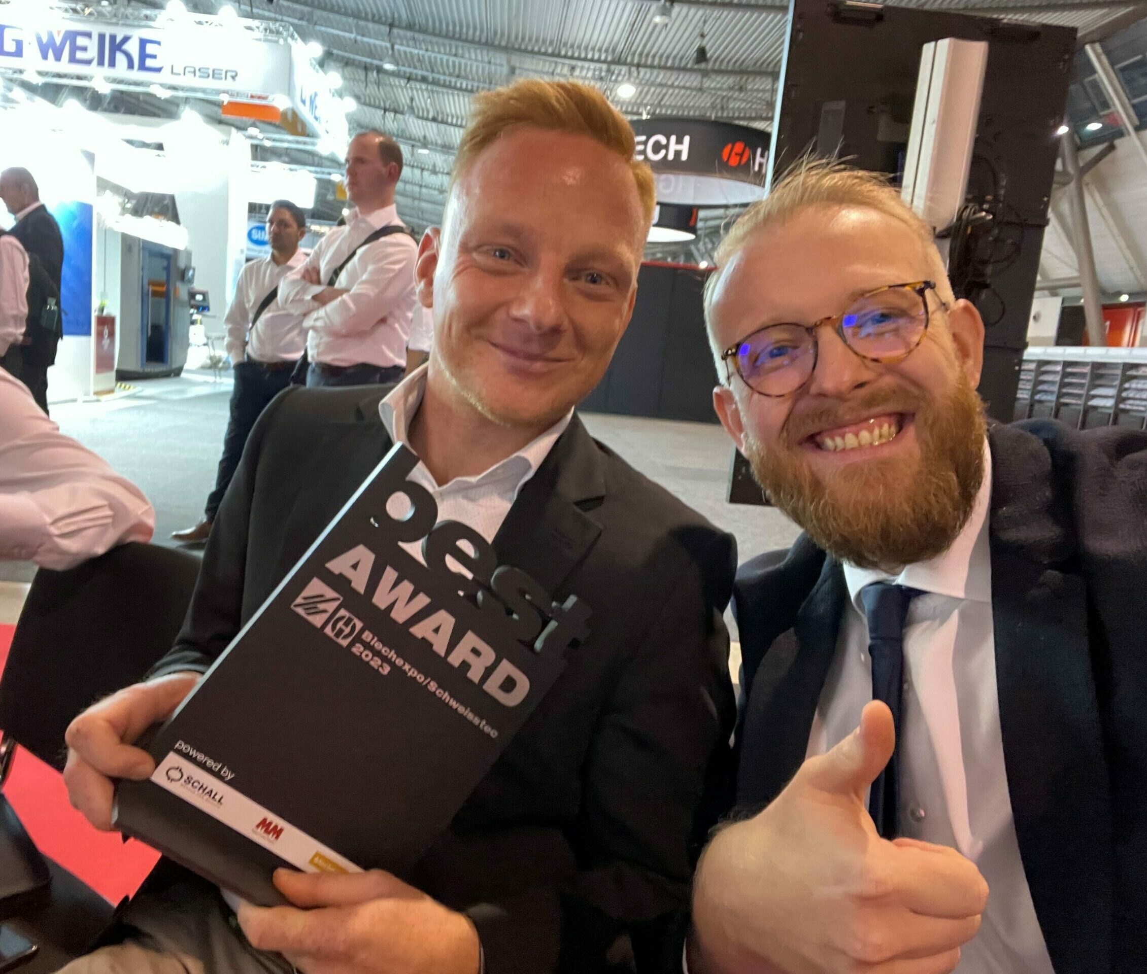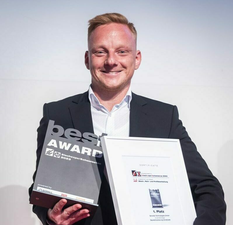 In the “Sheet metal, tube and profile processing” category, Senodis came out on top ahead of J. Schmalz and Hans-Schröder-Maschinenbau and won 1st place in the category yesterday. The expert jury led by Frauke Finus (Editor-in-Chief at Blechnet) honoured the digitalisation solution and emphasised that “Senodis has brought a thoroughly innovative product to the market”. In her laudatory speech, Finus discussed the special characteristics of the CeraCode® marking solution, focussed on the importance of consistent component marking in hot forming and praised the innovative approach from which the entire sheet metal processing industry could benefit. Following the award ceremony, winners and spectators came together for a champagne reception and Senodis received numerous interested questions about the CeraCode® technology.